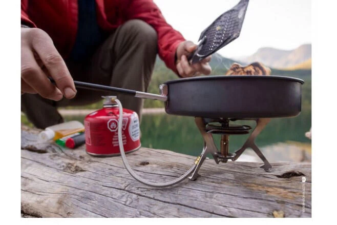 The WindPro II camp stove combines the stability and wind protection of a remote-burner design with the convenience of canister fuel. Unlike other canister stoves the WindPro II is capable of running on liquid-feed direct from the canister. This added versatility lets you run the stove in traditional upright mode for optimal efficiency and flame control or, with a simple twist, invert the canister on the included stand to deliver liquid gas directly to the burner. This advantage allows greatly improved cold-weather and low-fuel performance, and boosts stove output significantly anytime speed really counts.