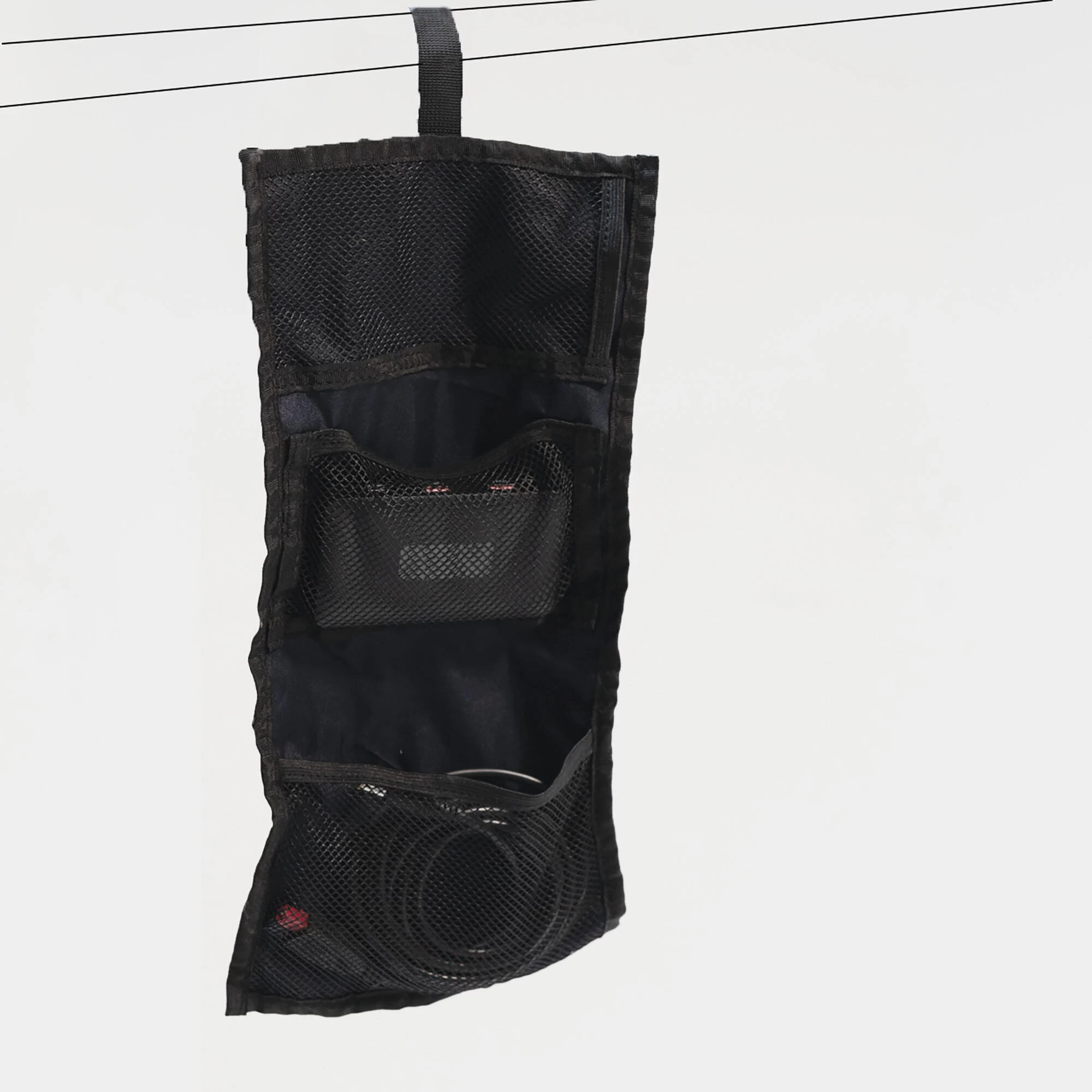 Use the pouch, which can be hung up to protect the case from knocks and moisture; as well as your devices, (e.g. phones, power bank) in the pockets provided.