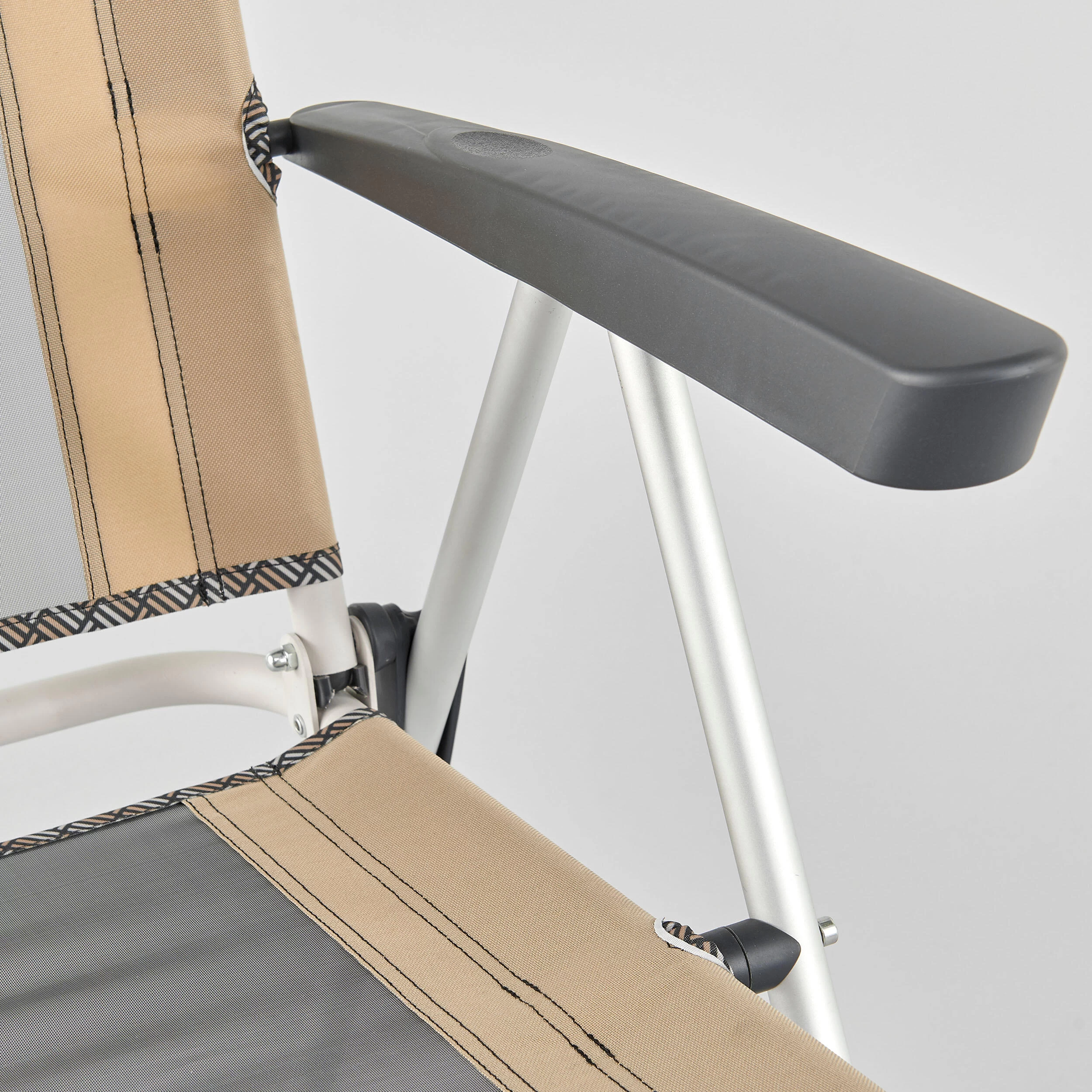 Our team of camping enthusiasts created this Comfort reclining chair. Foldable and comfortable to sit down and relax on while you’re camping.An extremely comfortable chair for relaxing on, it includes a headrest, two armrests and above all, a wide, reclining ventilated backrest with several resting positions.