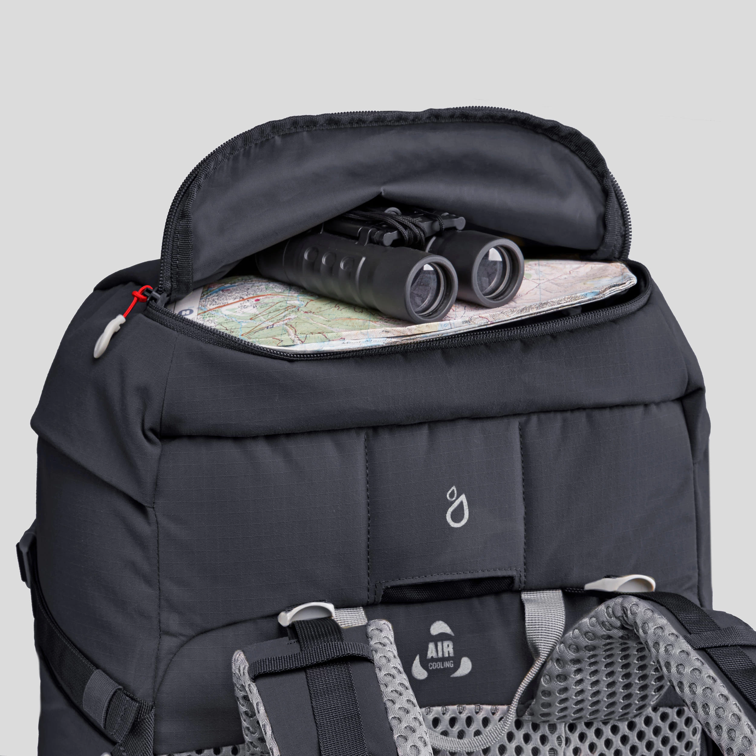 AT THE TOP of the bag, store your waterproof jacket and fleece within arm’s reach.