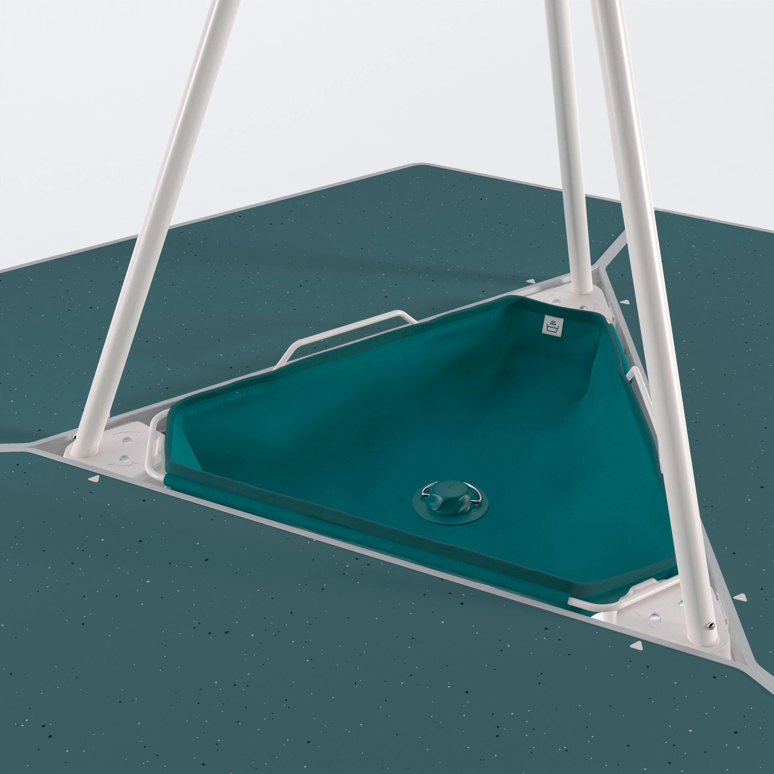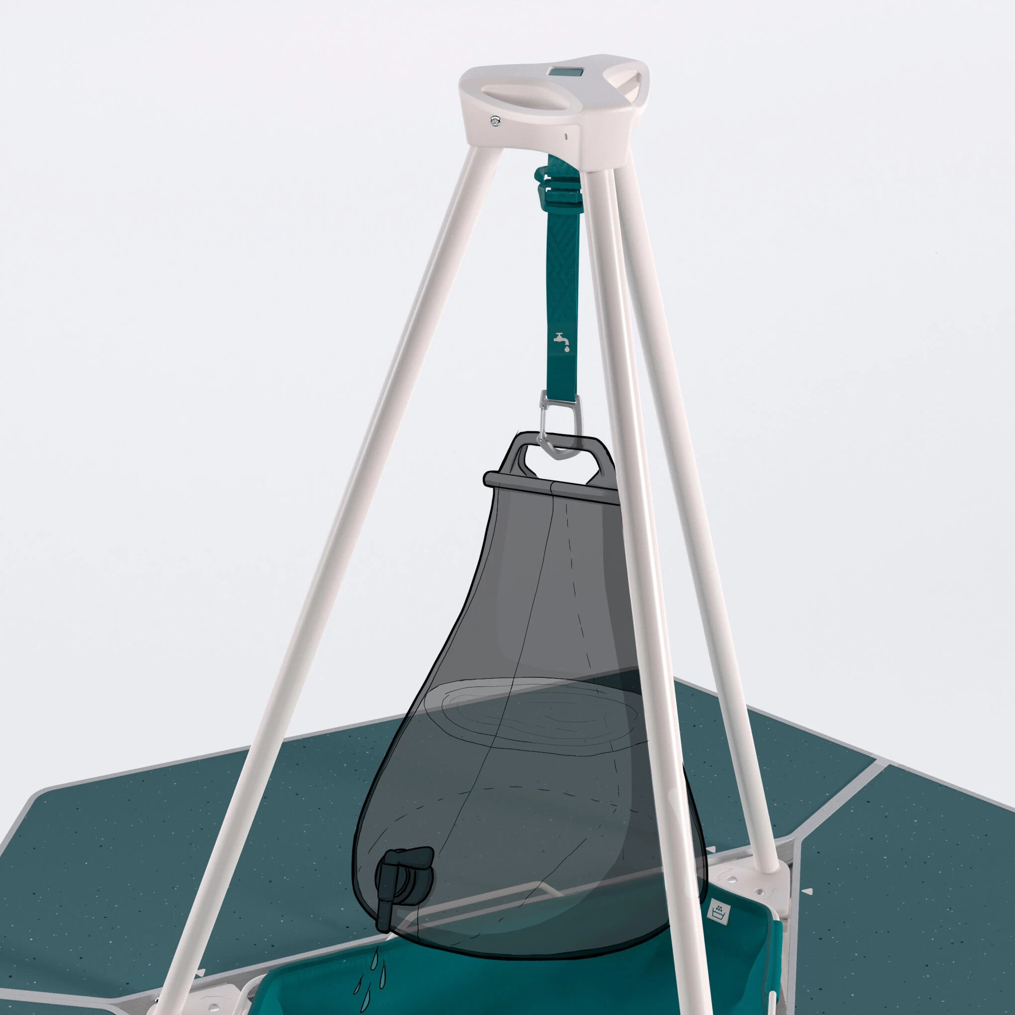 Our designers have designed this innovative Tepee kitchen unit, which has been thought through to the last detail for a fun camping experience.Our motivation? To make cooking easier when camping! You will find kitchen comforts: big working area, sink, storage, high hanging hooks, bin stand.