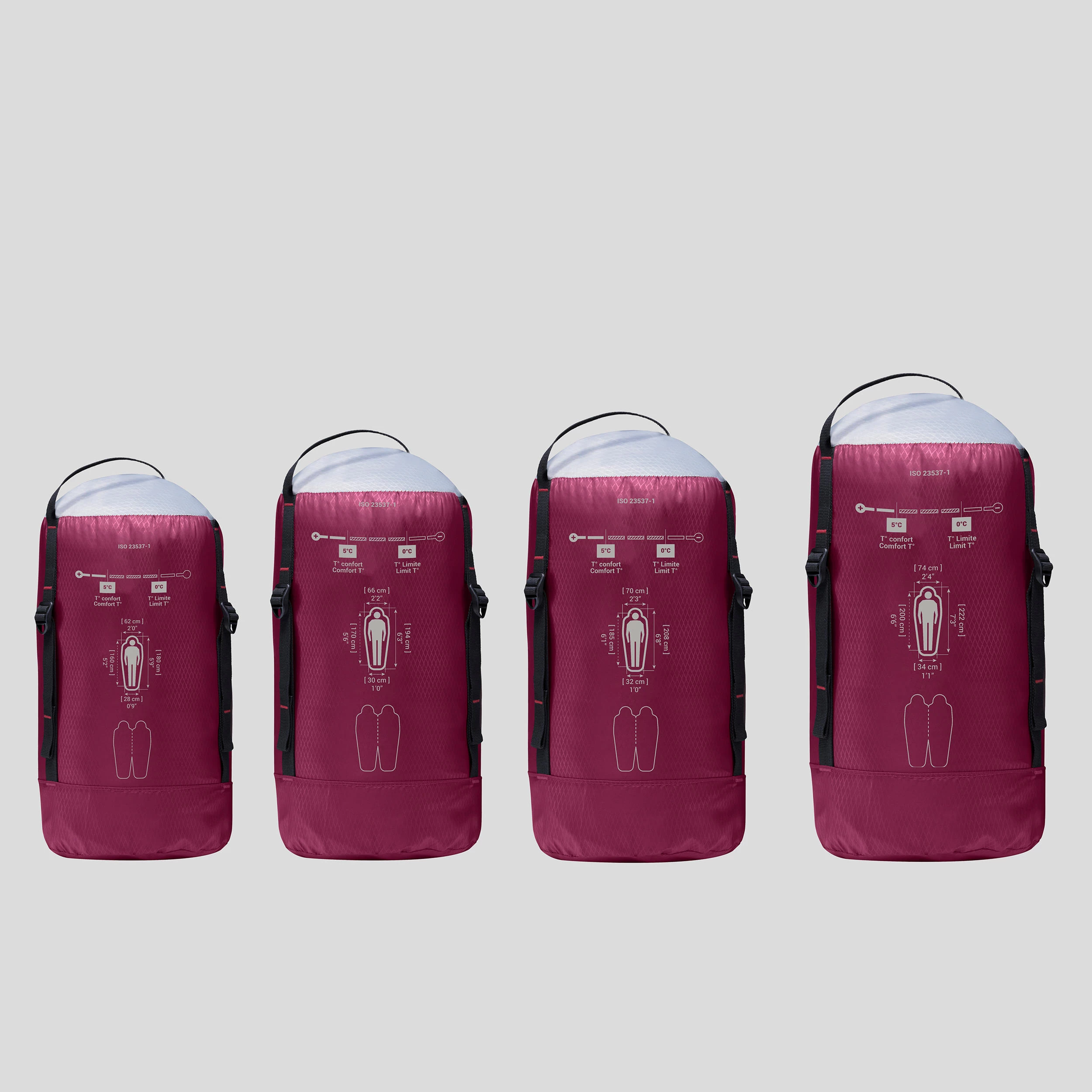 We display the comfort temperatures on all our sleeping bags, tested by an independent laboratory (AITEX) in compliance with European standard ISO 23537-1:2022. The comfort temperature rating is the lower limit at which the user in relaxed posture is generally in thermal equilibrium and feels neither too cold nor too hot (for a standard woman in normal conditions of use). Choose your sleeping bag according to this criterion.