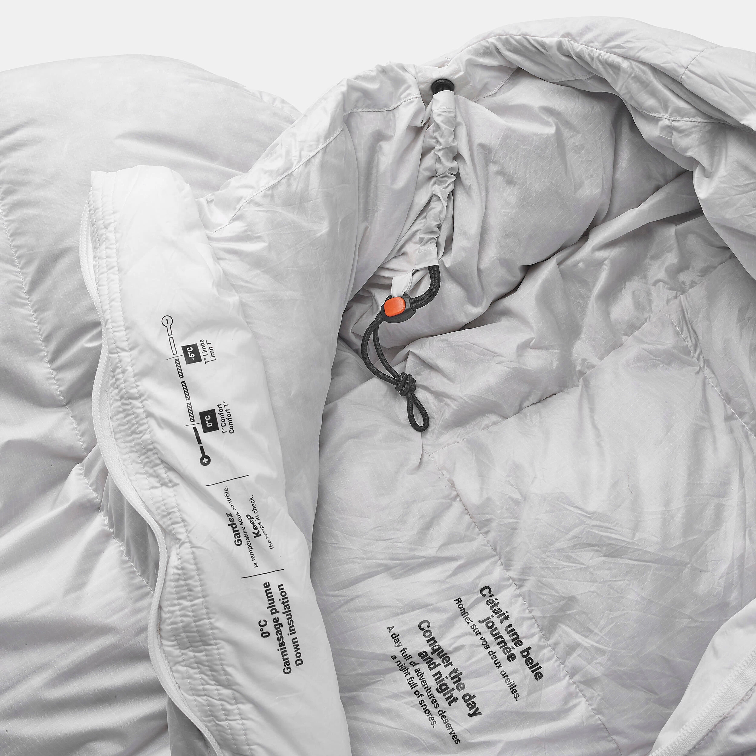Designed with the aim of reducing our CO2 impact, this 3 season down sleeping bag is not dyed.Warm and light thanks to the fill power (800 CUIN) of the down (RDS-certified). It helps you sleep comfortably in temperatures above or equal to 0°C.